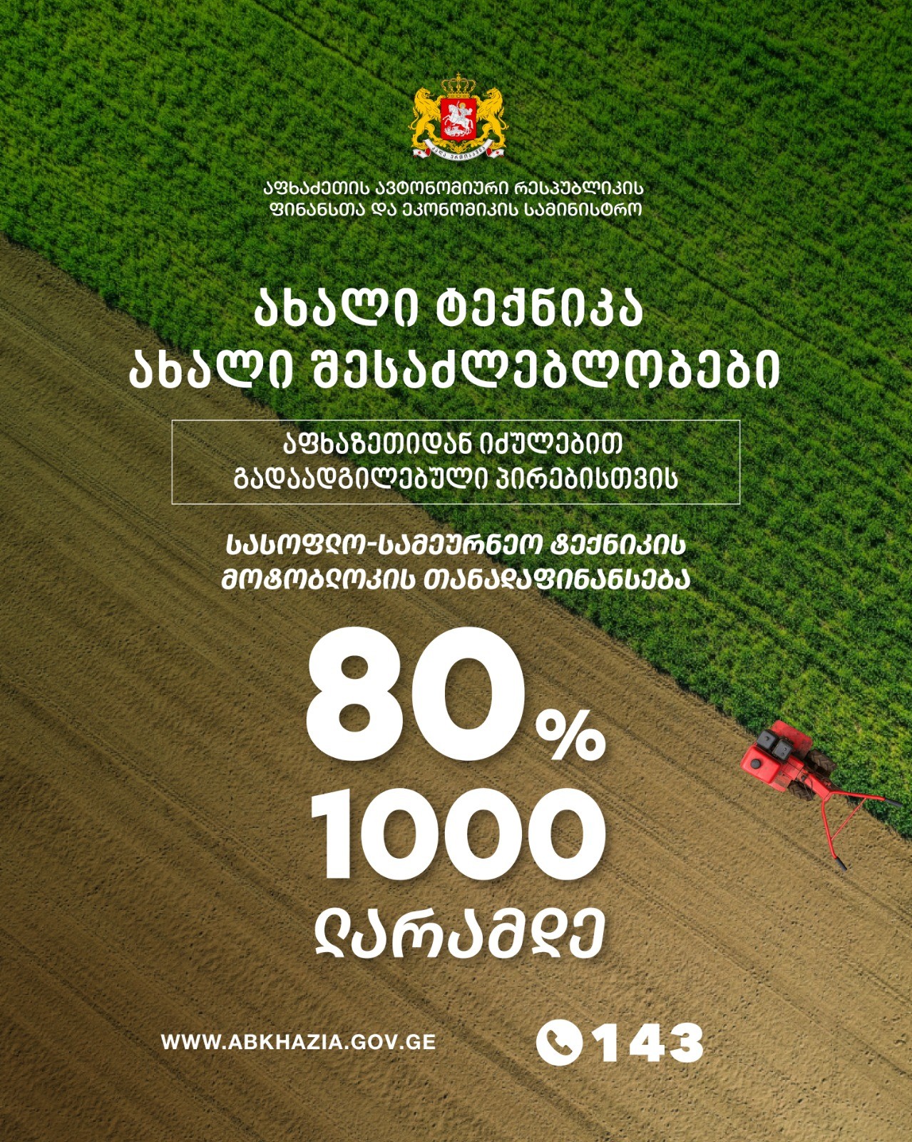 აფხაზეთიდან იძულებით გადაადგილებული პირებისთვის სასოფლო-სამეურნეო ტექნიკის - მოტობლოკის თანადაფინანსება