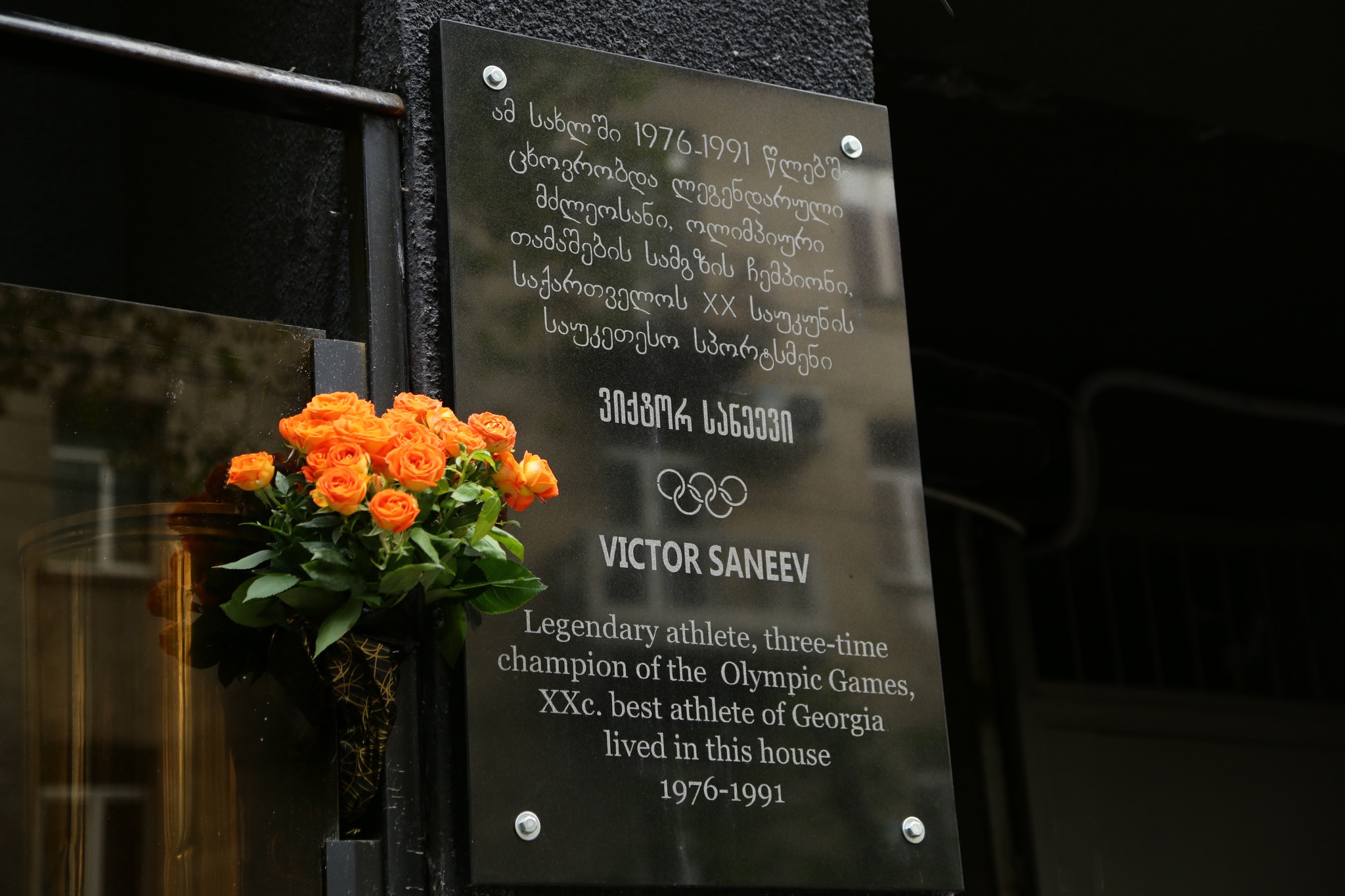 დღესვე ვიქტორ სანეევის ხსოვნის საპატივცემულოდ, ვაკეში, მისი საცხოვრებელი სახლის წინ (ფალიაშვილის ქუჩა N66, I სადარბაზო) მემორიალური დაფა გაიხსნა. ღონისძიებას სპეციალური მოწვევით ვიქტორ სანეევის მეუღლე იანა ხვარცკია ესწრებოდა.