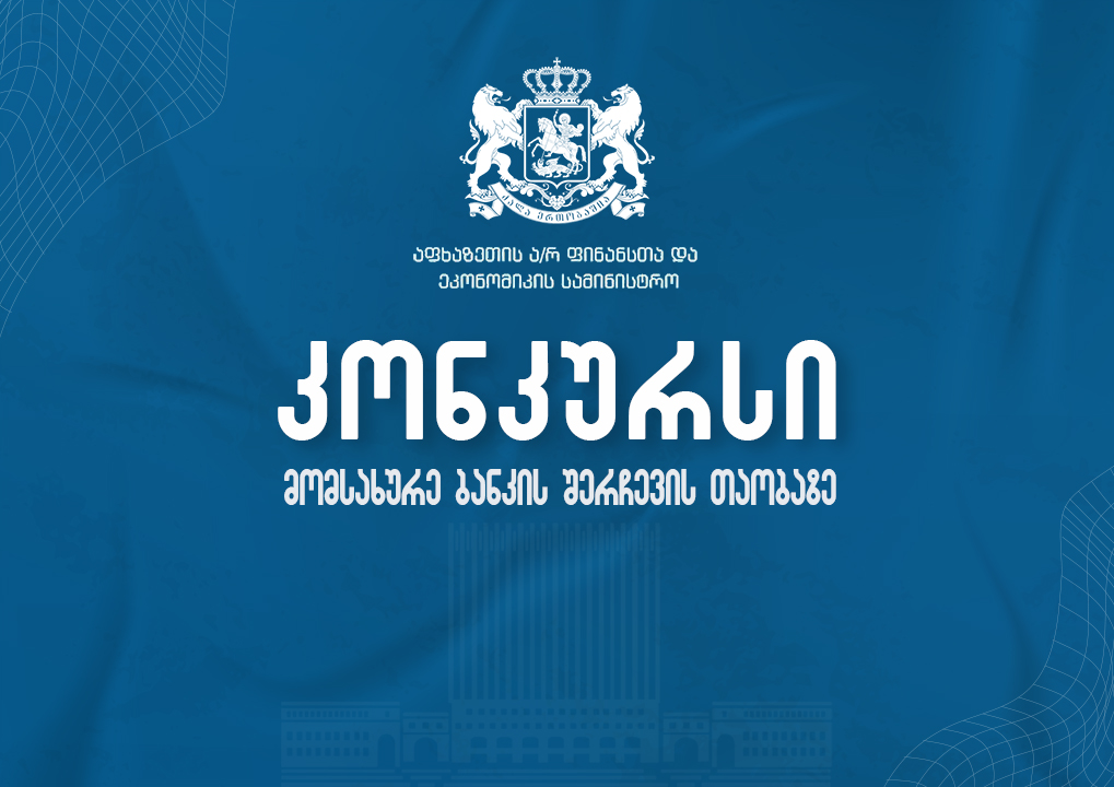 ,,აფხაზეთის ავტონომიური რესპუბლიკის ფინანსთა და ეკონომიკის სამინისტროს განკარგულებაში არსებულ ფულად სახსრებზე პროცენტის დარიცხვის მიზნით მომსახურე ბანკის შესარჩევი კონკურსის ჩატარების წესის“ დამტკიცების შესახებ“ აფხაზეთის ავტონომიური რესპუბლიკის ფინანსთა და ეკონომიკის მინიტრის 2025 წლის 17 ოქტომბრის №04-02/81 ბრძანებისა და „მომსახურე ბანკის შესარჩევი საკონკურსო კომისიის შექმნის შესახებ“ აფხაზეთის ავტონომიური რესპუბლიკის ფინანსთა და ეკონომიკის მინისტრის მოვალეობის შემსრულებლის 2025 წლის 20 ოქტომბრის N04-02/82 ბრძანების თანახმად, სამინისტრო აცხადებს სამინისტროს განკარგულებაში არსებულ ფულად სახსრებზე პროცენტის დარიცხვის მიზნით მომსახურე ბანკის შესარჩევ კონკურსს.